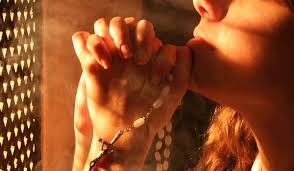 genuflexório. Pegou um terço e começou a balbuciar palavras repetitivas. Pouco